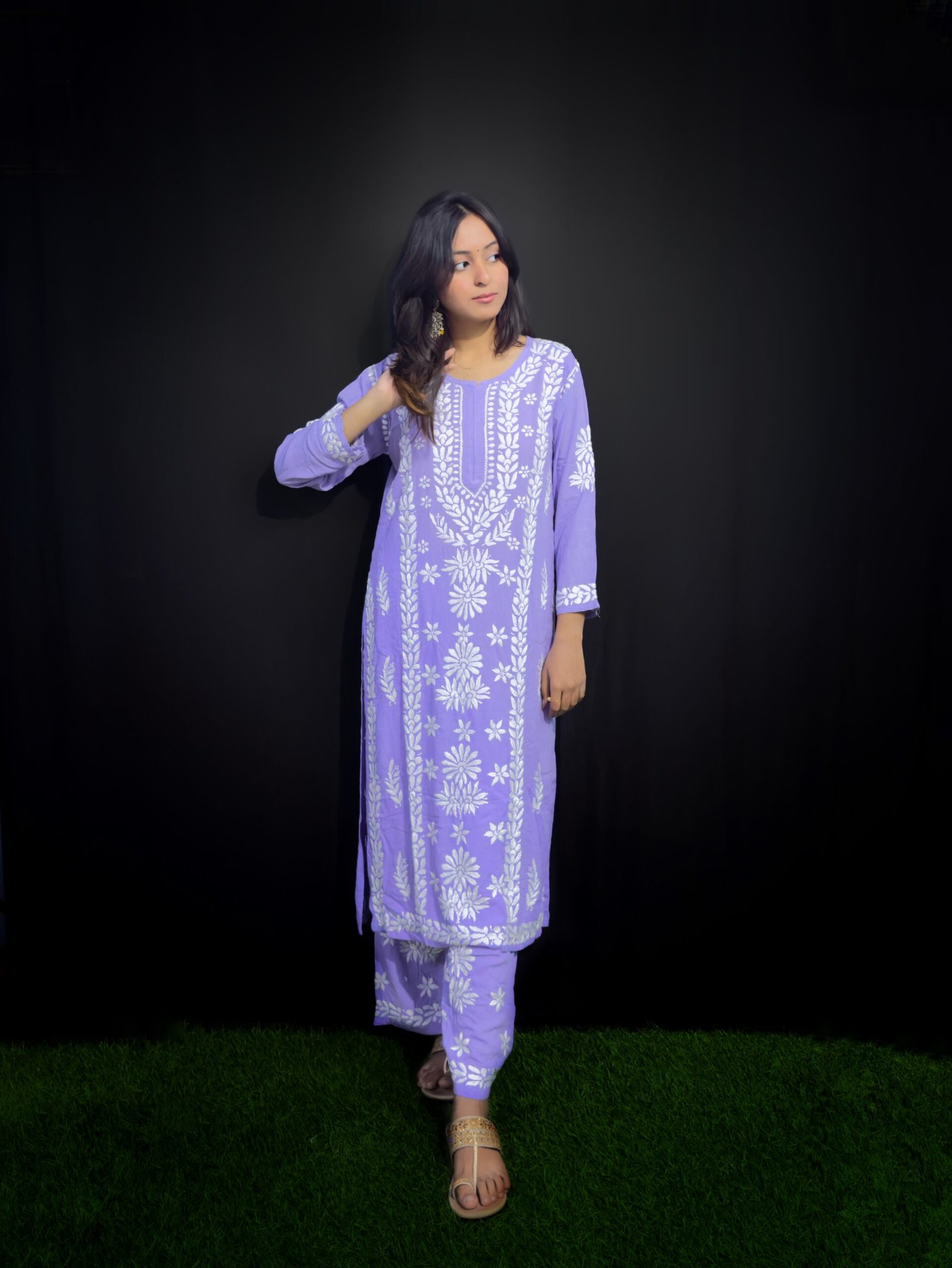 -Perfect fit pant-shirt modal fabric chikankari pant-shirt Hand-embroidered fabric printed with beautiful designs