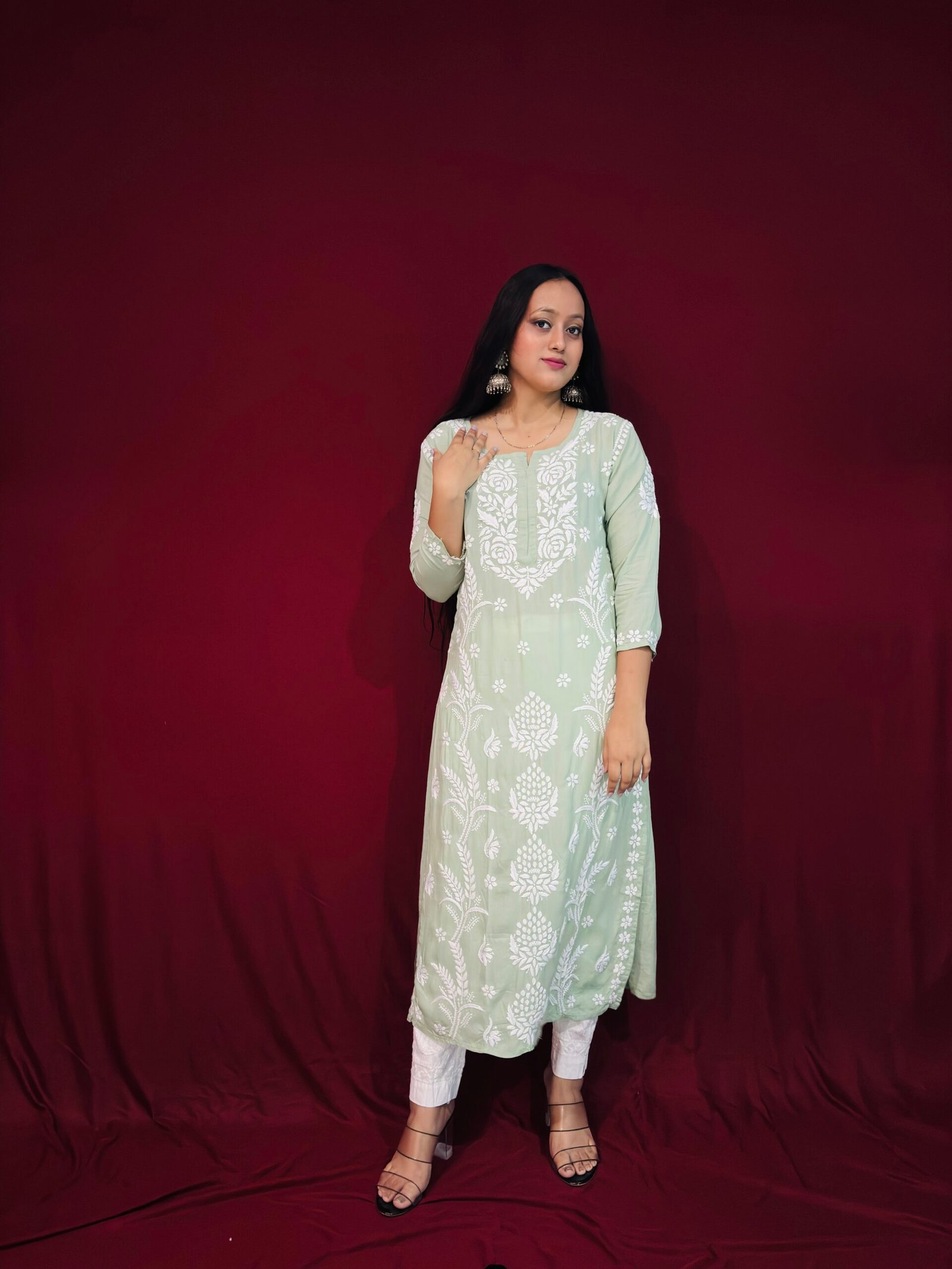 Perfect fit Kurta modal chikankari kurti Hand-embroidered fabric printed with beautiful designs