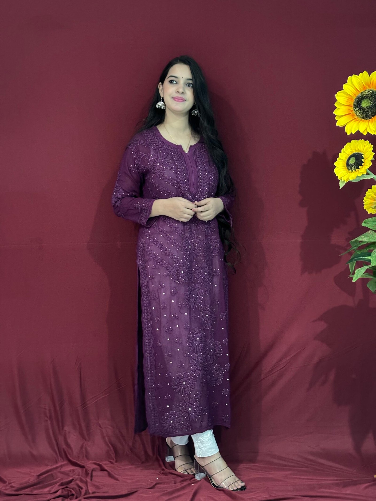 Perfect fit Kurti modal chikankari kurti Hand-embroidered fabric printed with beautiful designs