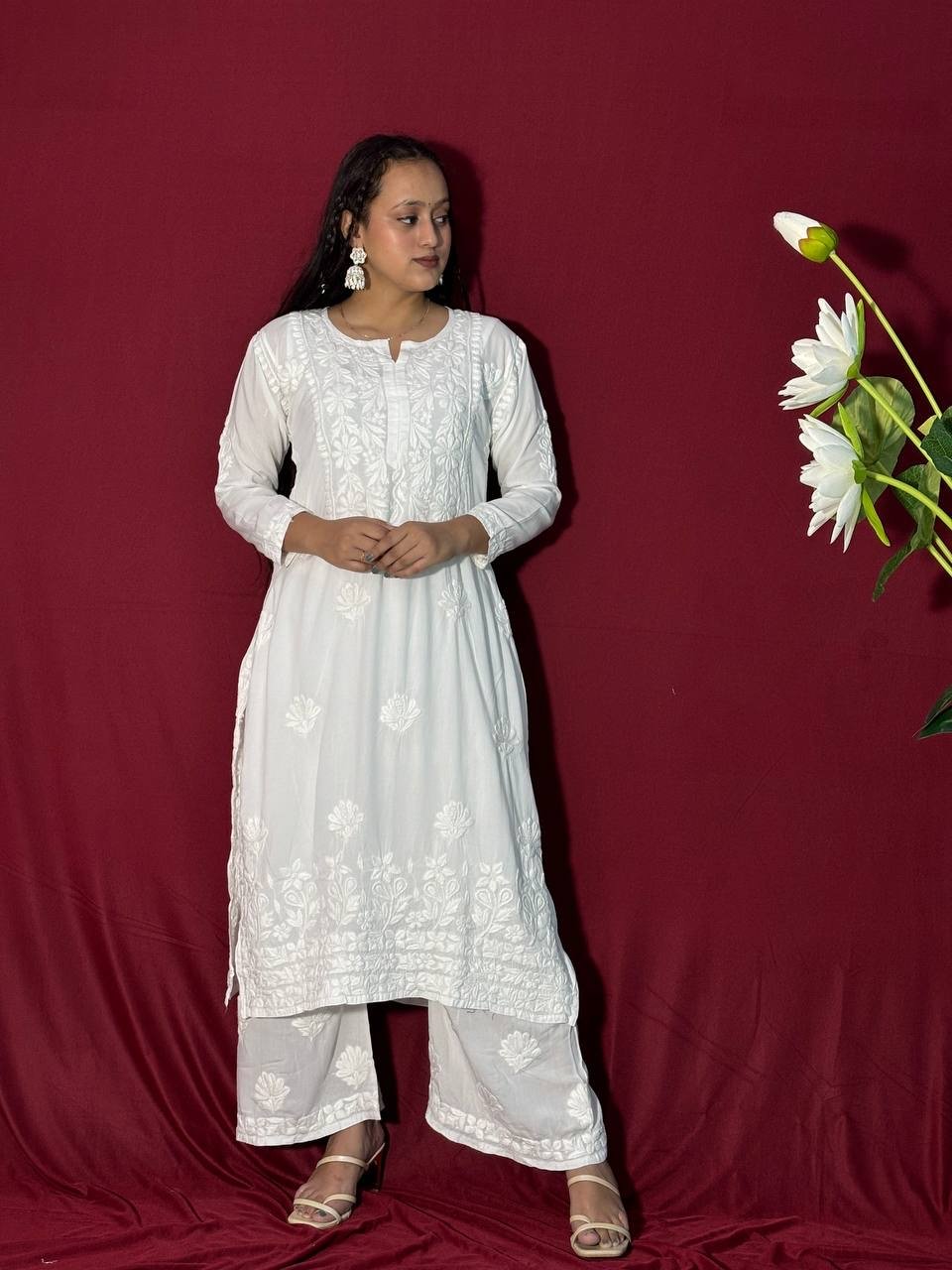 Perfect fit Kurta Aline chikankari kurti Hand-embroidered fabric printed with beautiful designs